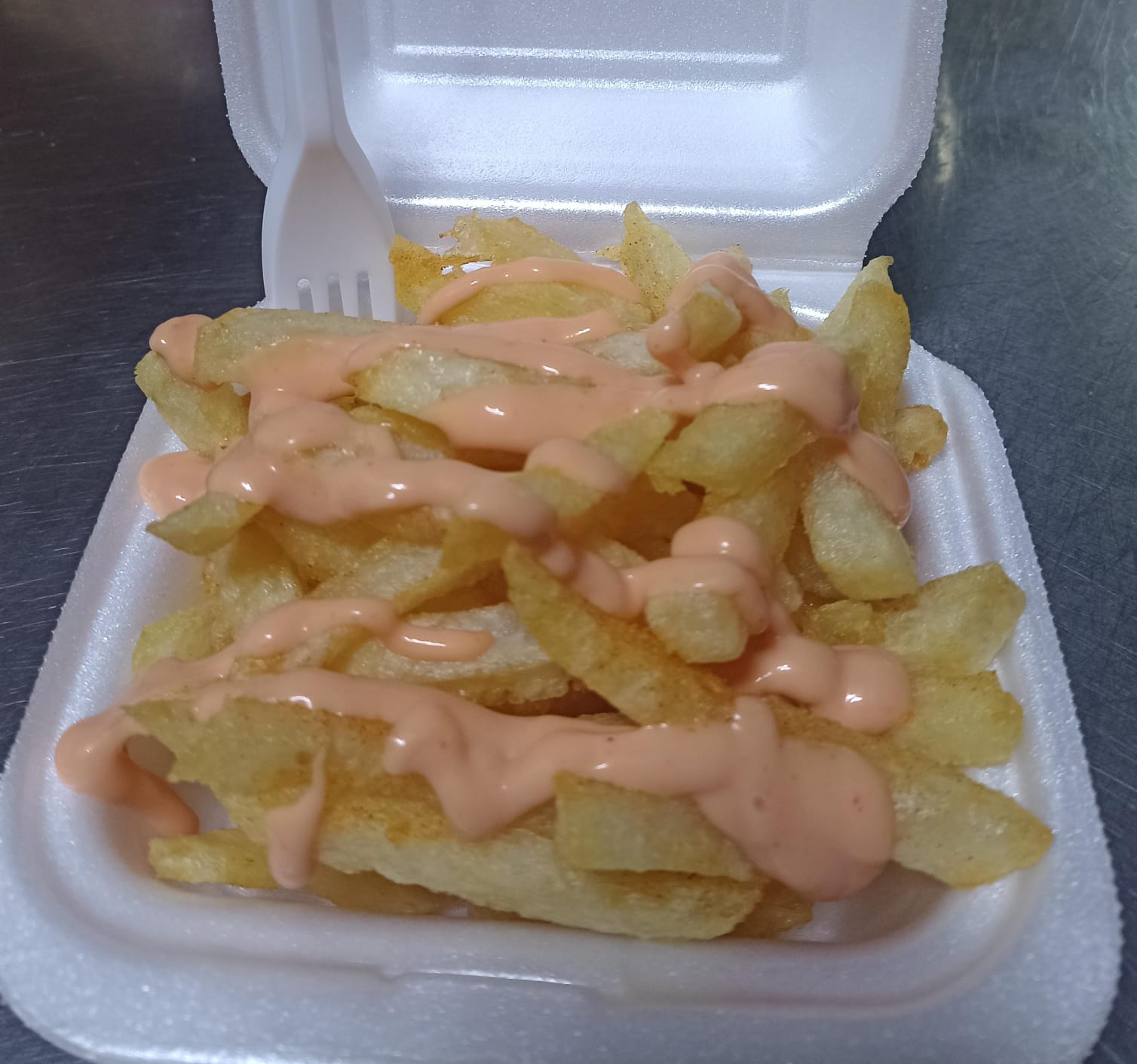 Hamburguesa especial, papas y Coca-Cola 250 ml.