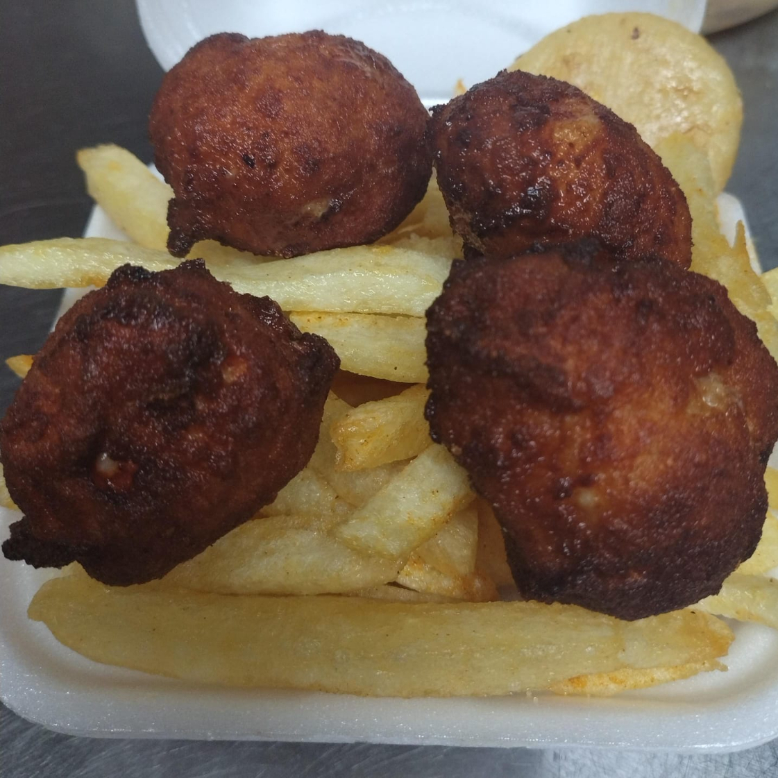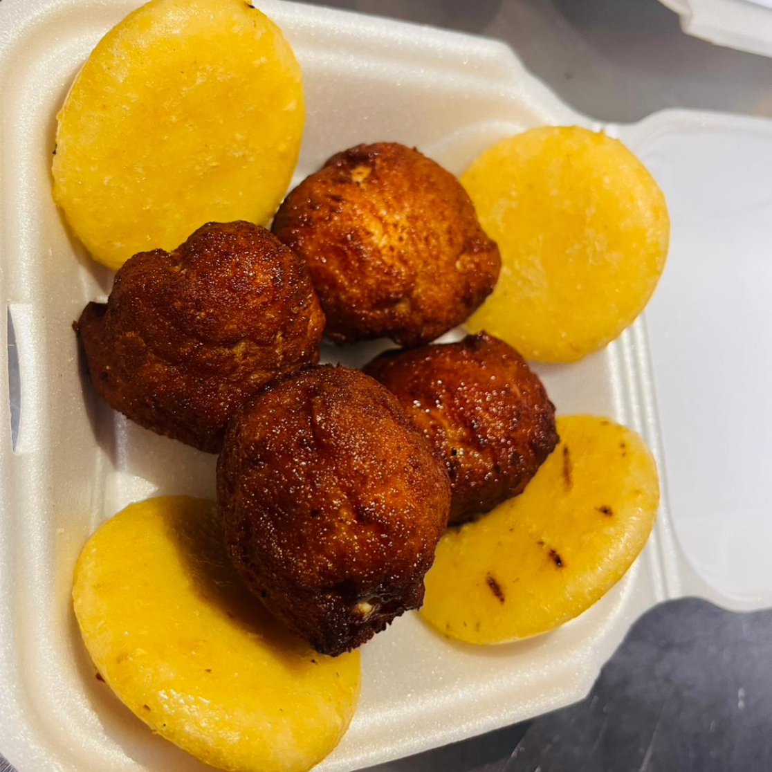 4 mini Bombones de pollo + 4 Arepitas fritas