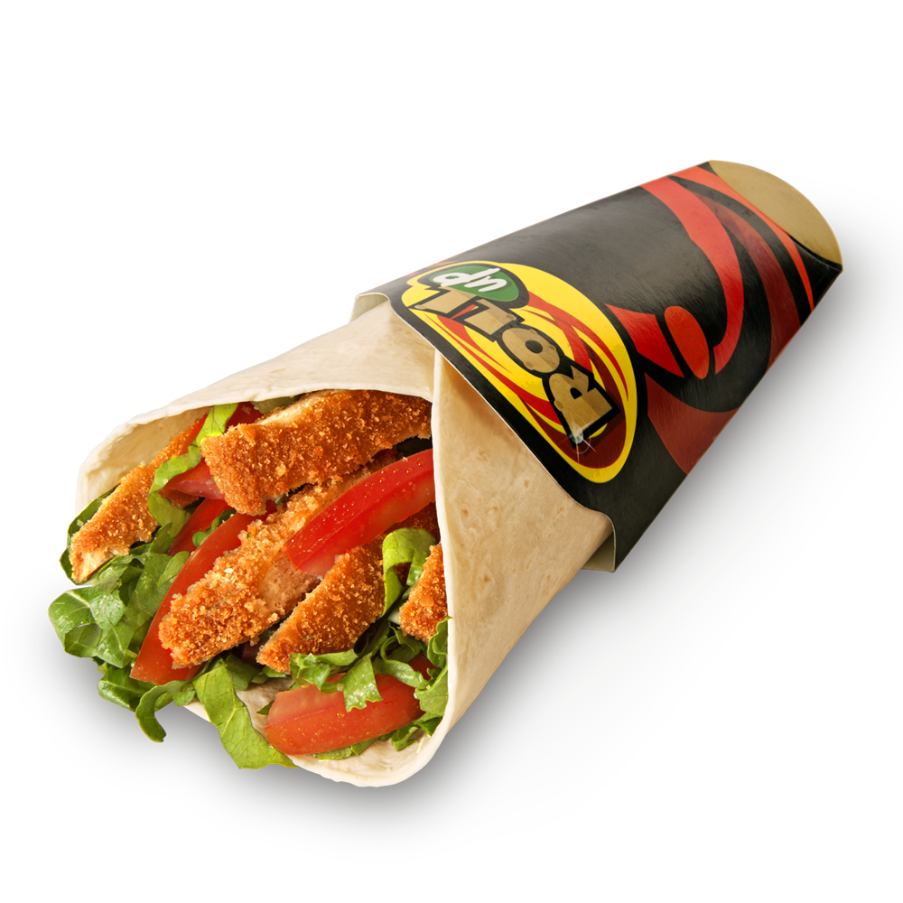 Wrap de tortilla de harina con pollo, verduras, salsa Rapidogs y pimienta.