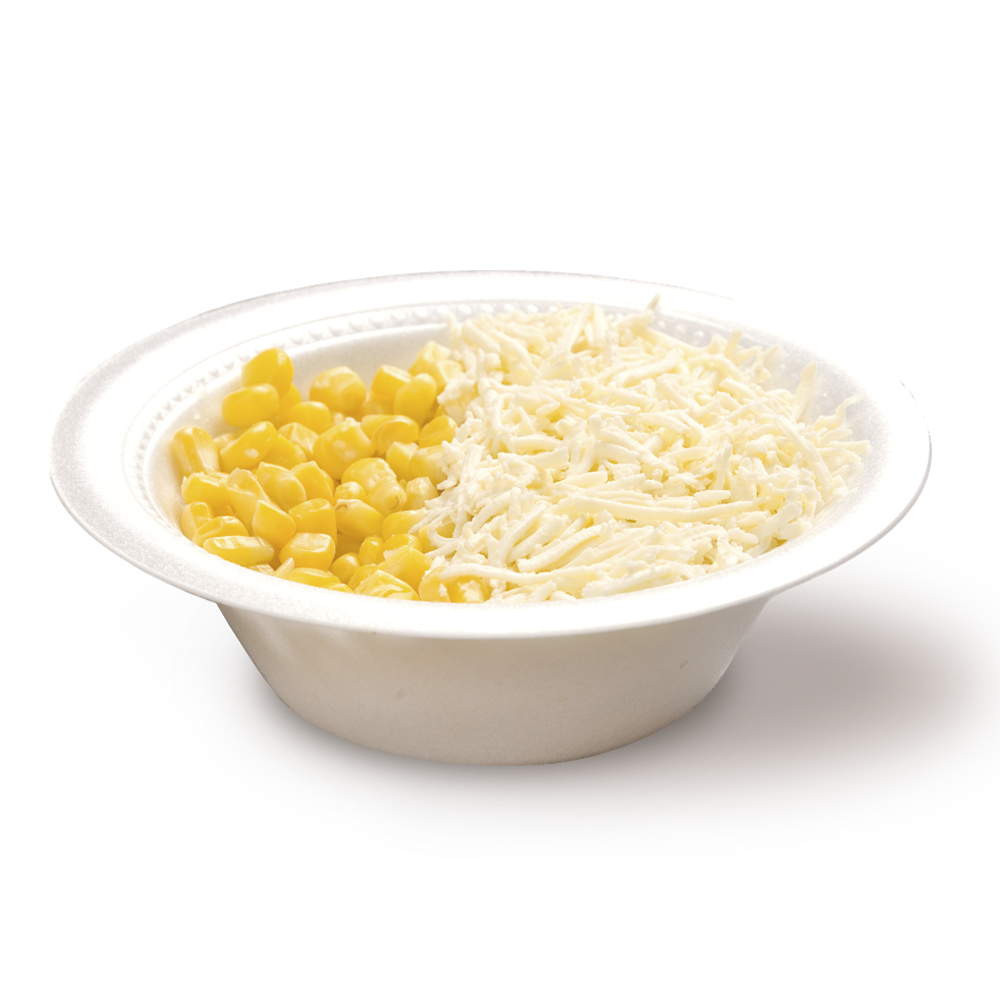Maicitos con maíz tierno desgranado, mantequilla, queso blanco, tocineta, papa ripio, salsa Rapidogs.