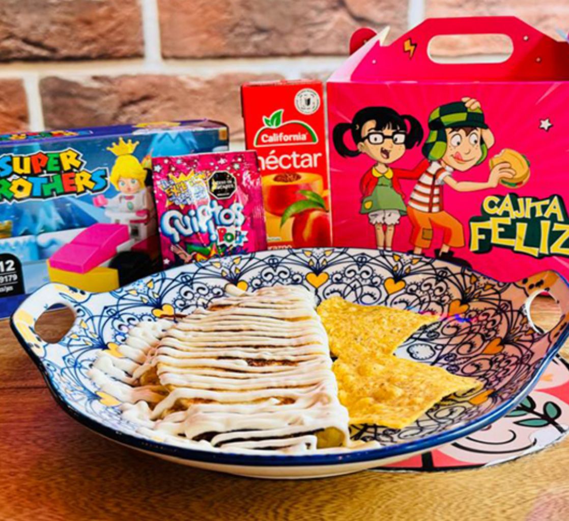 Una quesadilla mini al gusto acompañado de Un juguito en caja y un juguete de la temporada