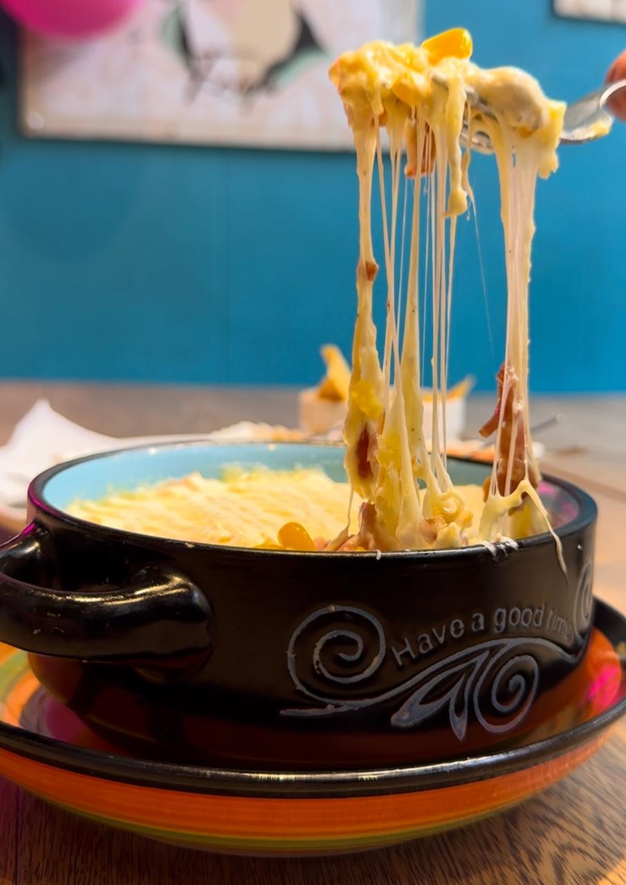 Maicitos, queso, tocineta y crema.