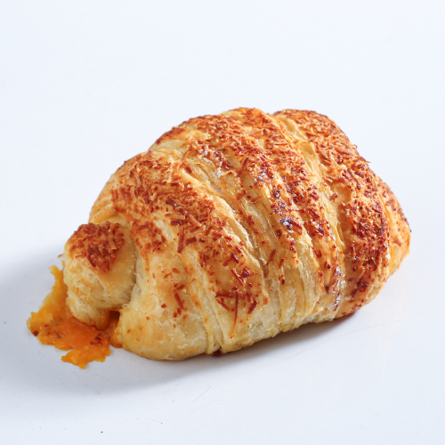 Croissant de mantequilla relleno con cheddar, mozarella y parmesano.