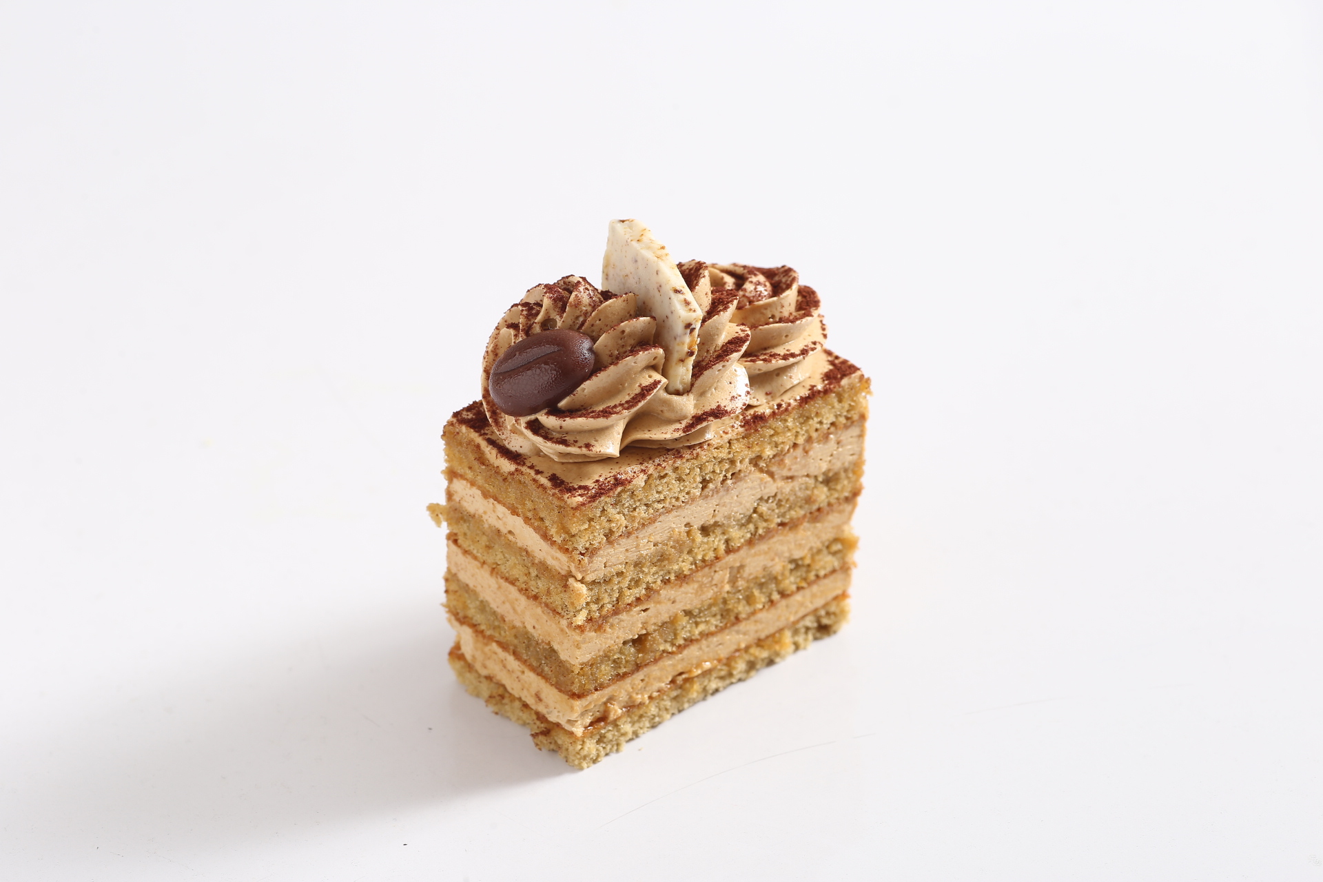 Bizcochuelo blanco artesanal bañado con licor de café, con capas de crema de café y crema. 6 a 8 Porciones.