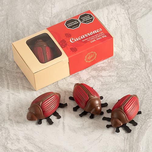 Cubierta chocolate semiamargo crocante relleno de almibar y auténtico aguardiente antioqueño.