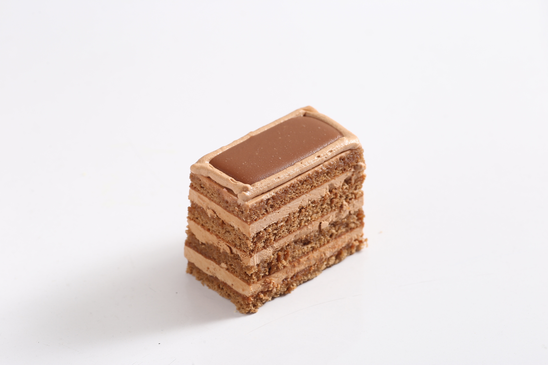 Bizcochuelo artesanal de chocolate relleno de crema de café.