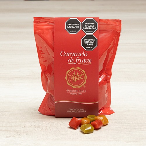 Caramelos semi duros de sabores a base de frutas naturales, 250 g.