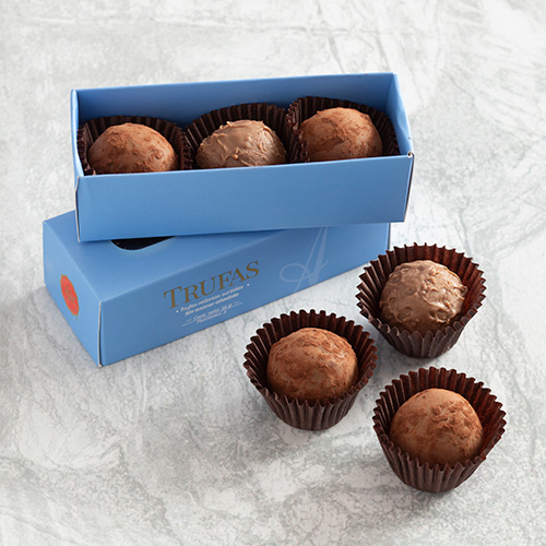 Trufas artesanales surtidas rellenas de ganache de chocolate. Estuche por 15 unidades.