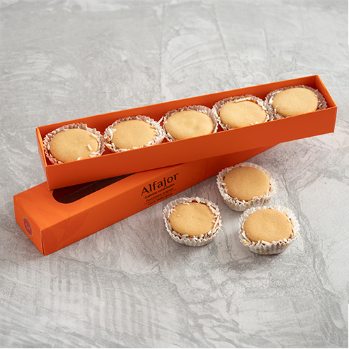 Galletas de mantequilla finas y suaves, con arequipe y coco horneado. Caja 5 unidades.