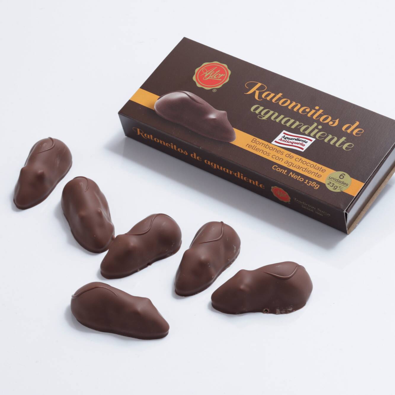 Cubierta chocolate semiamargo crocante relleno de almibar y auténtico aguardiente antioqueño.