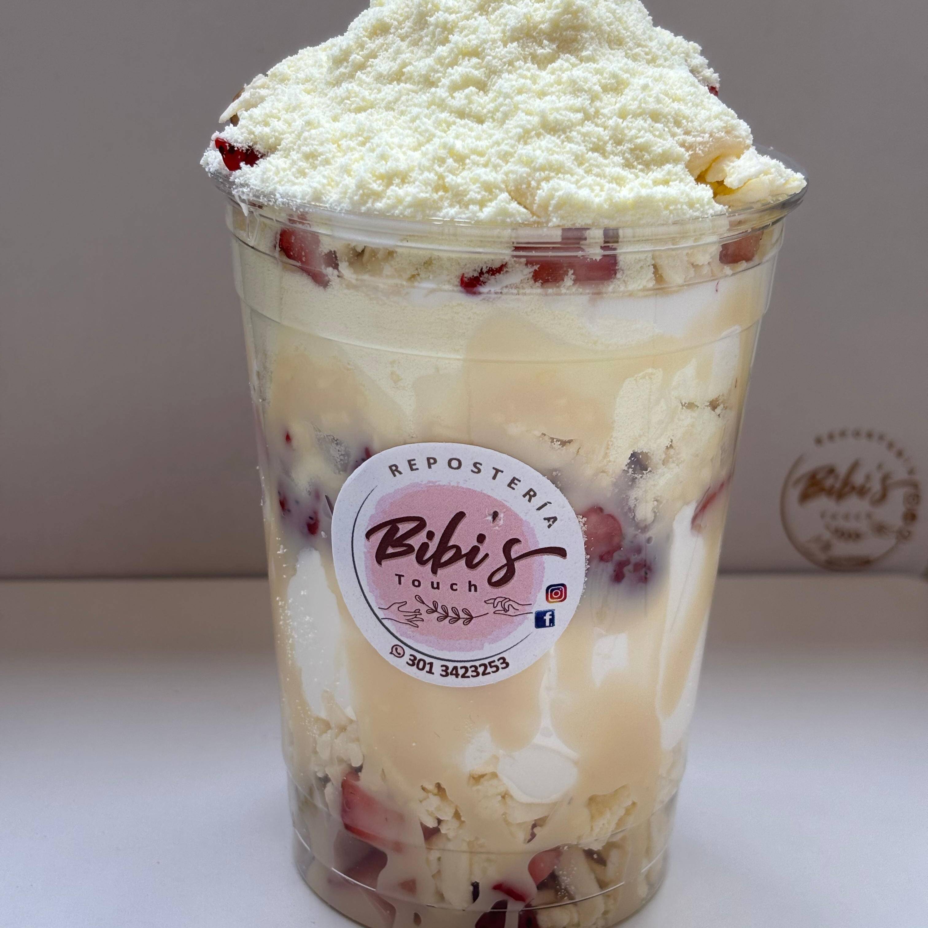 Fresas, crema especial, lecherita, mucho queso, vaso 16 oz.