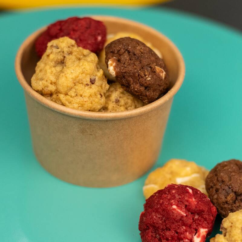Bowl de 8oz x 7 unidades de little cookies de 2 sabores, mitad de uno y mitad del otro.