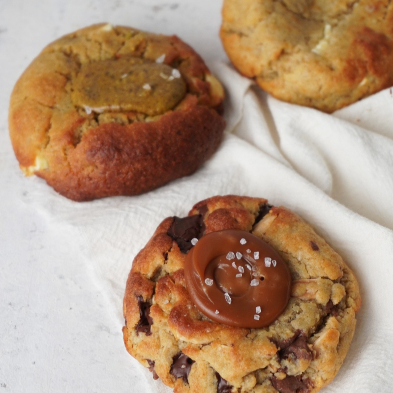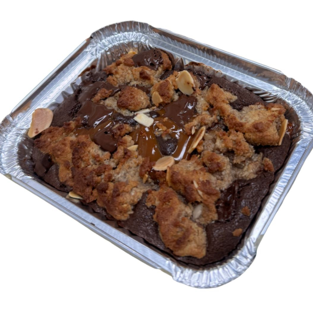 Mitad brownie keto, mitad galleta de chocolate y almendra. Sin azúcar ni gluten. Perfecto para consumir frío o para recalentar en el horno.