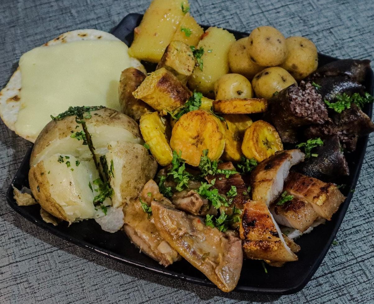 Picada Duo especial Contiene morsilla , chorizo , costichicharron , oreja de cerdo, papas al vapor, yuca, platanitos