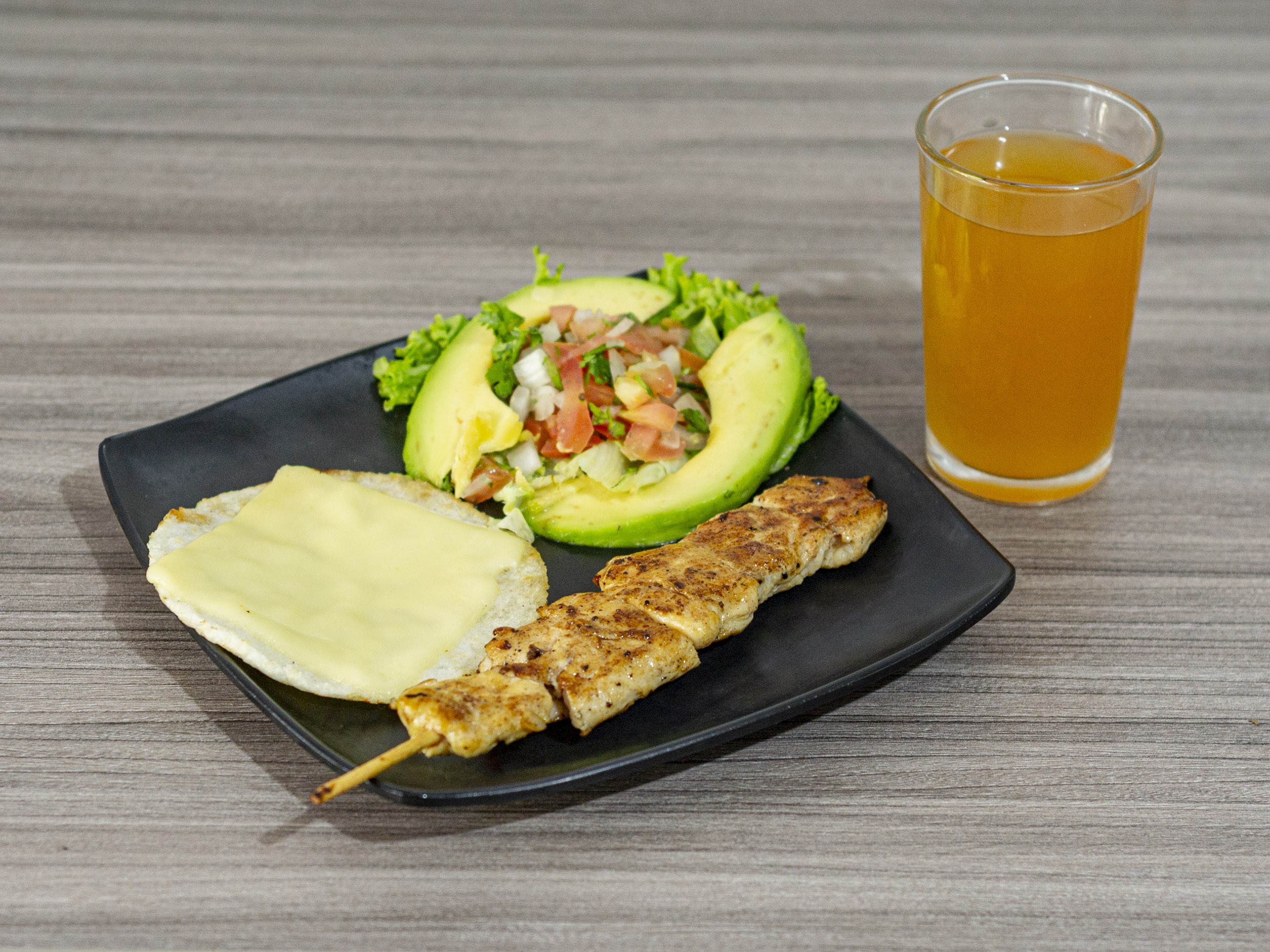 Rico chuzo de pollo 100gr, acompañado de ensalada casera, arepa con queso mozarella y base lechuga