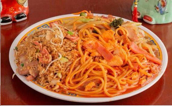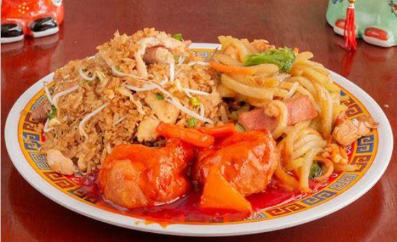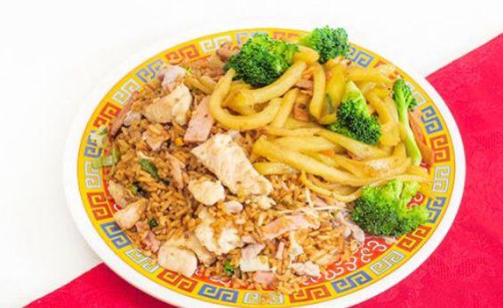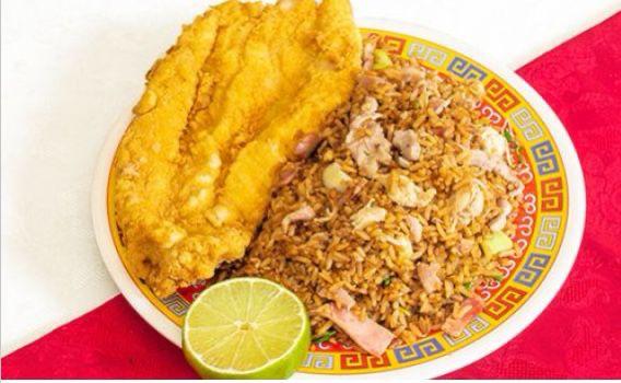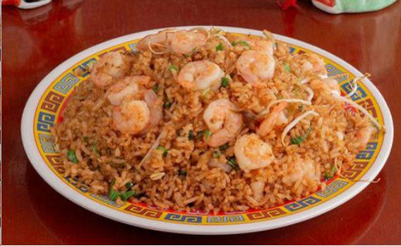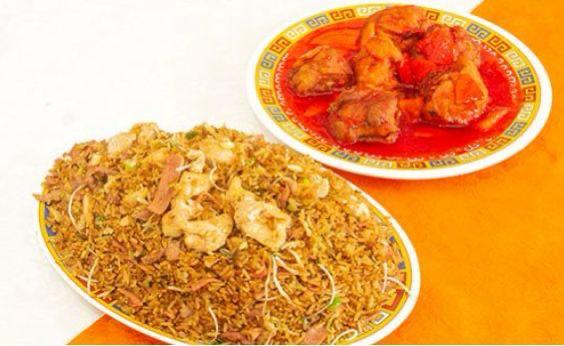 Arroz con camarón y chop suey con camarón y 1.5 L gaseosa para 2 o 3 personas.