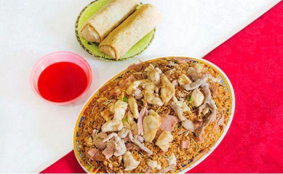 Arroz caja grande mas 4 lumpias para 4-5 personas