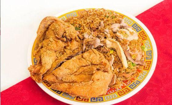 Caja grande de arroz chino+ 8 presas de pollo +chopsuey