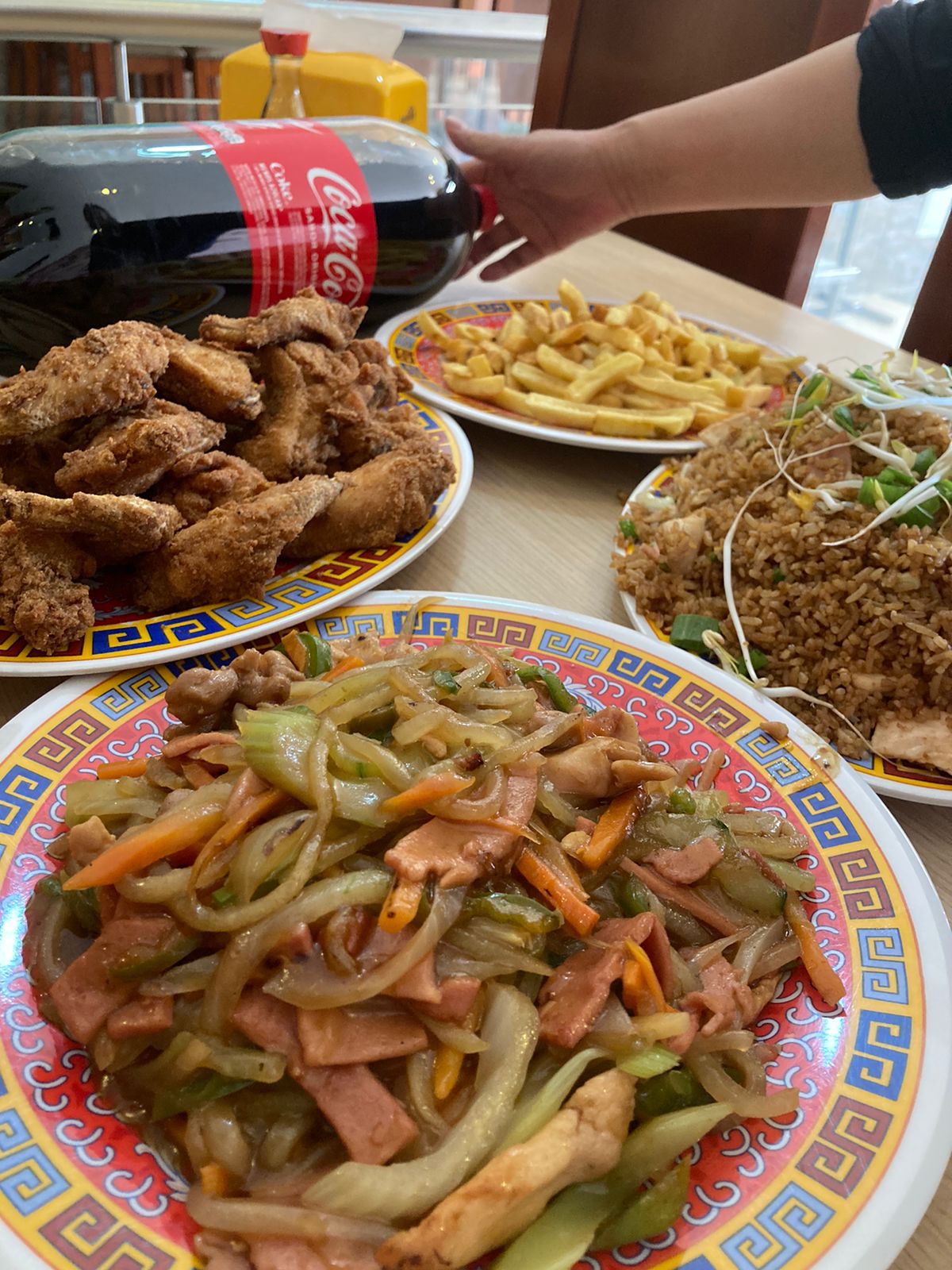Arroz chino especial + Pollo picado + Camaron & Chopsuey + Pollo picado + Camarones para (3 personas)