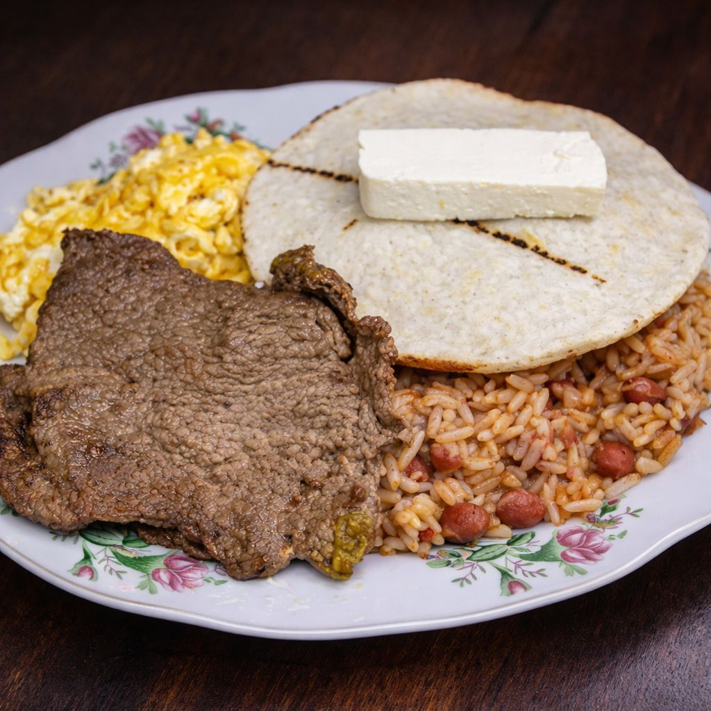 Delicioso calentado , acompañado de Res, huevos revueltos a tu gusto , arepa, queso y chocolate.