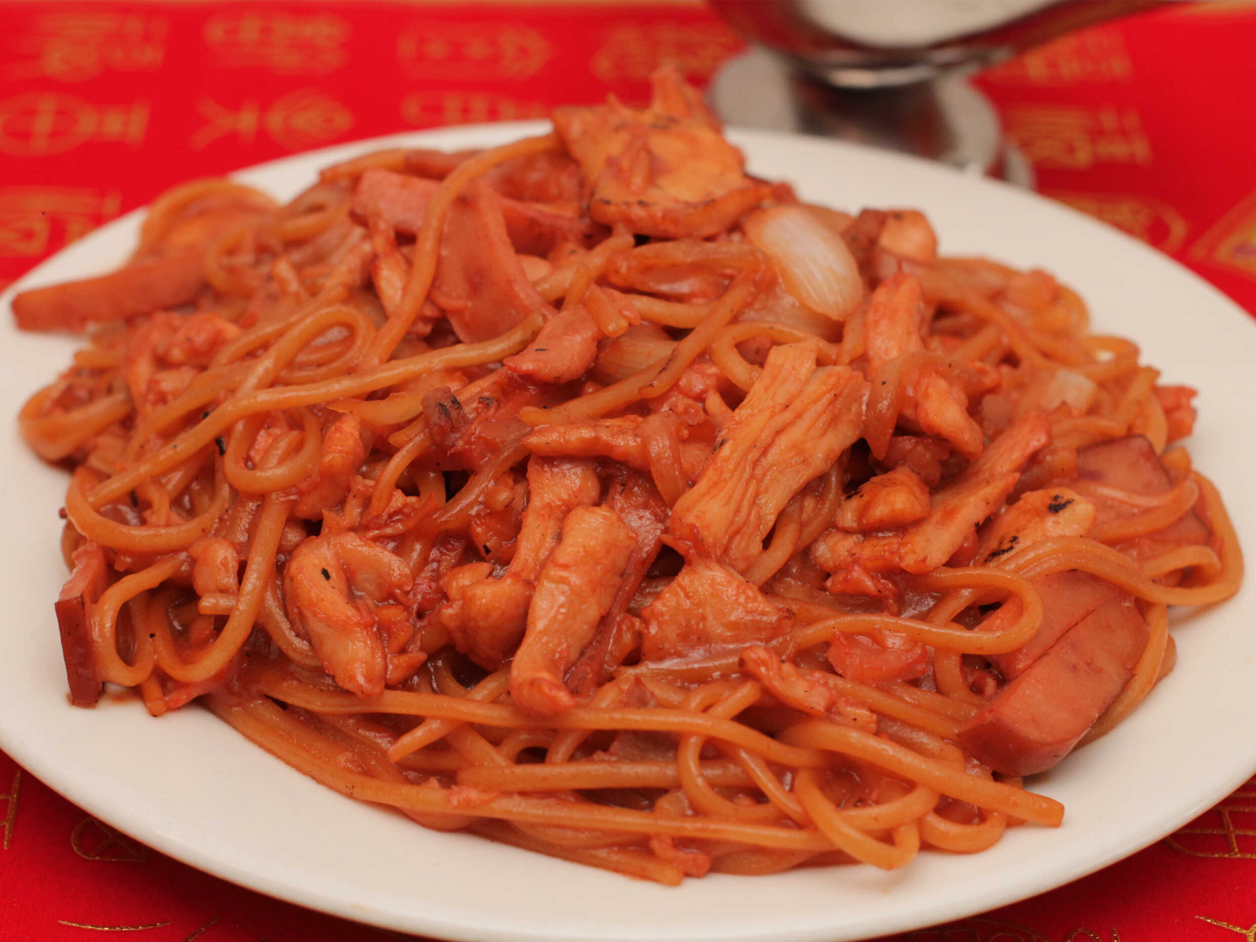 Spagguetis especial (pollo cerdo y jamón)