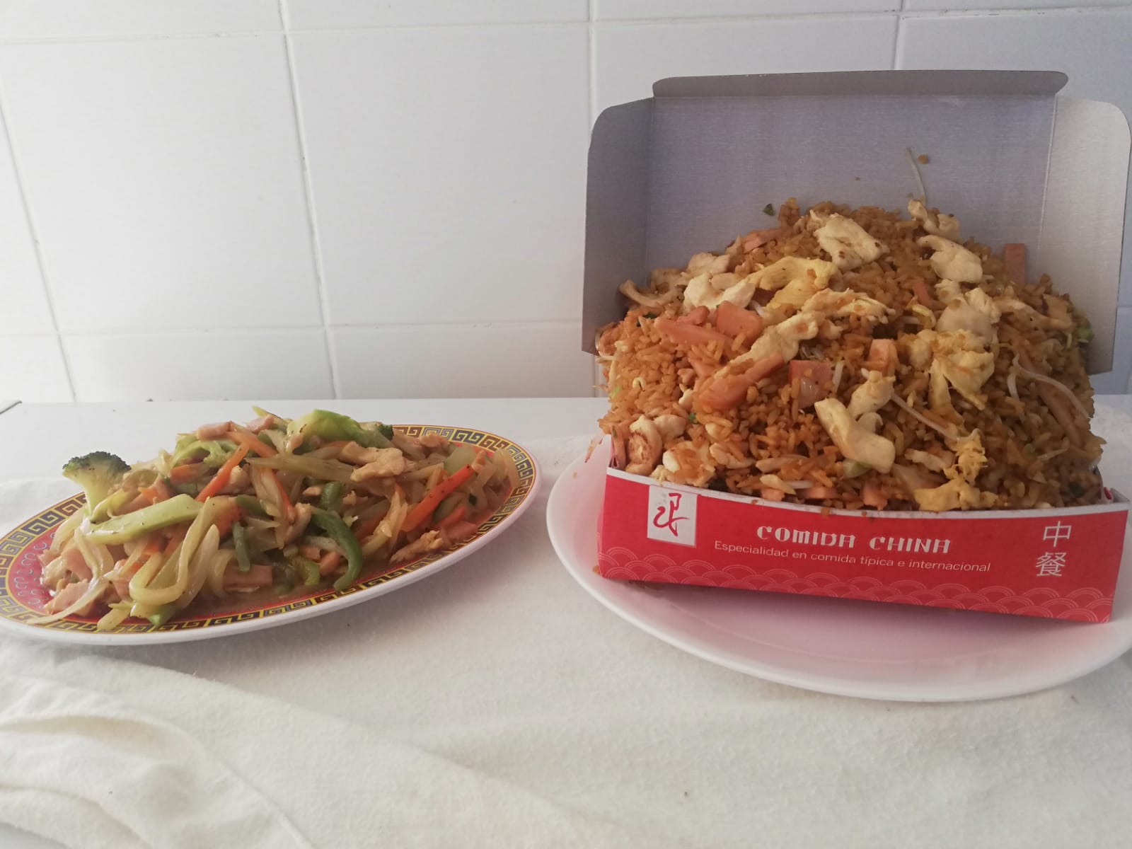 Combinado arroz chino con spaguetis.