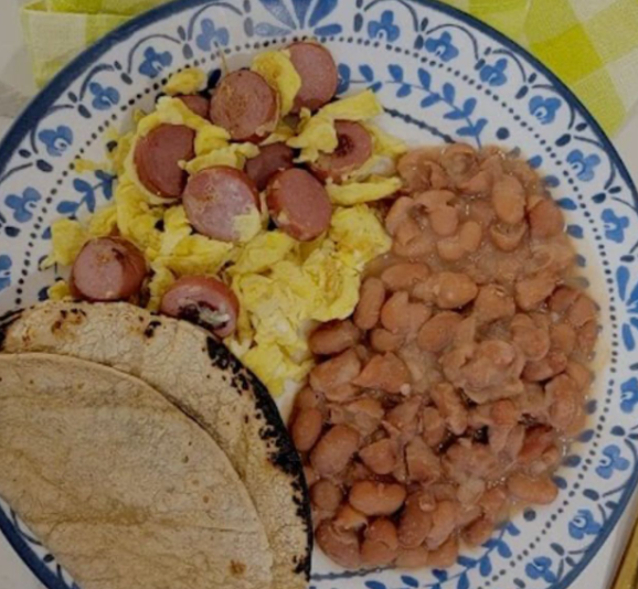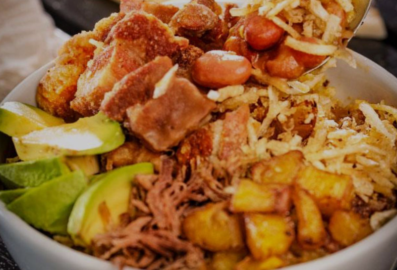 Frijol, arroz, chicharrón, frijoles, maduritos, maíz, huevo, aguacate, chorizo.