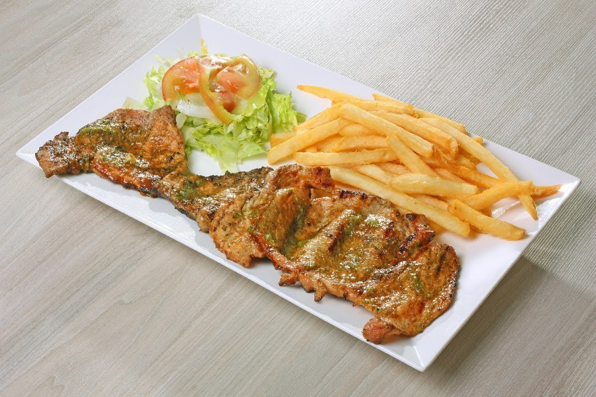 PROTEINA CERDO ACOMPAÑADO DE PAPA FRANCESA, ENSALADA,ARROZ, SOPA DEL DIA