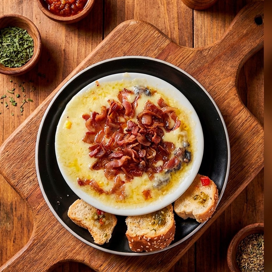 Queso, jamón, tocineta