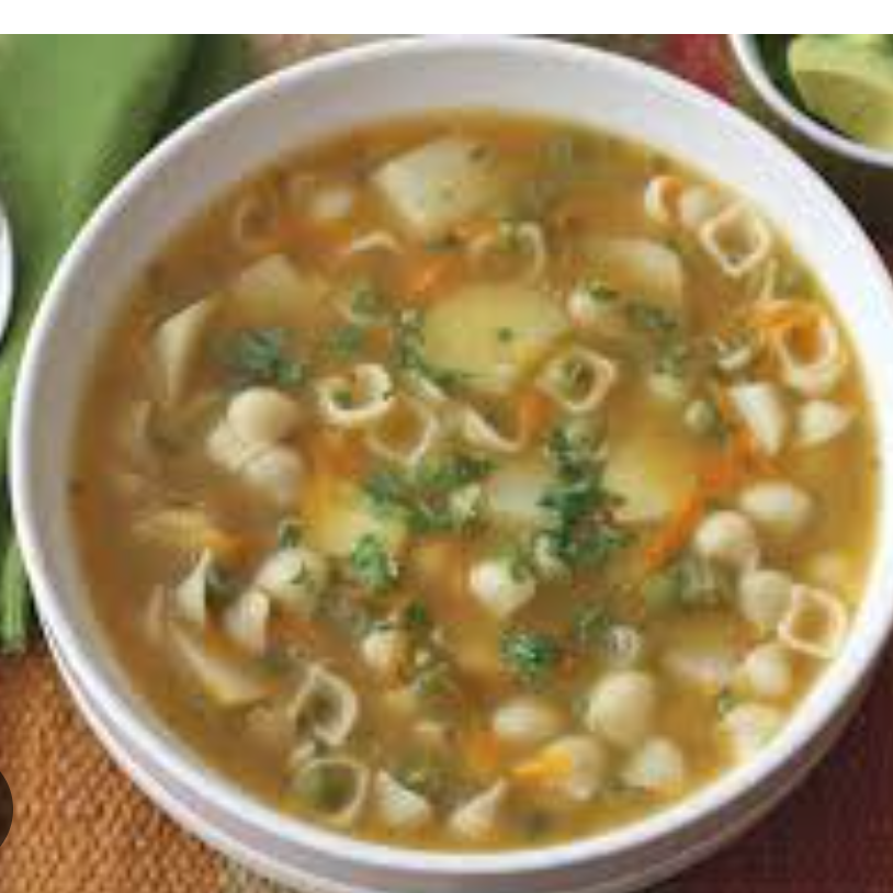 Pechuga, papas a la francesa ensalada frijol huevo sopa y bebida