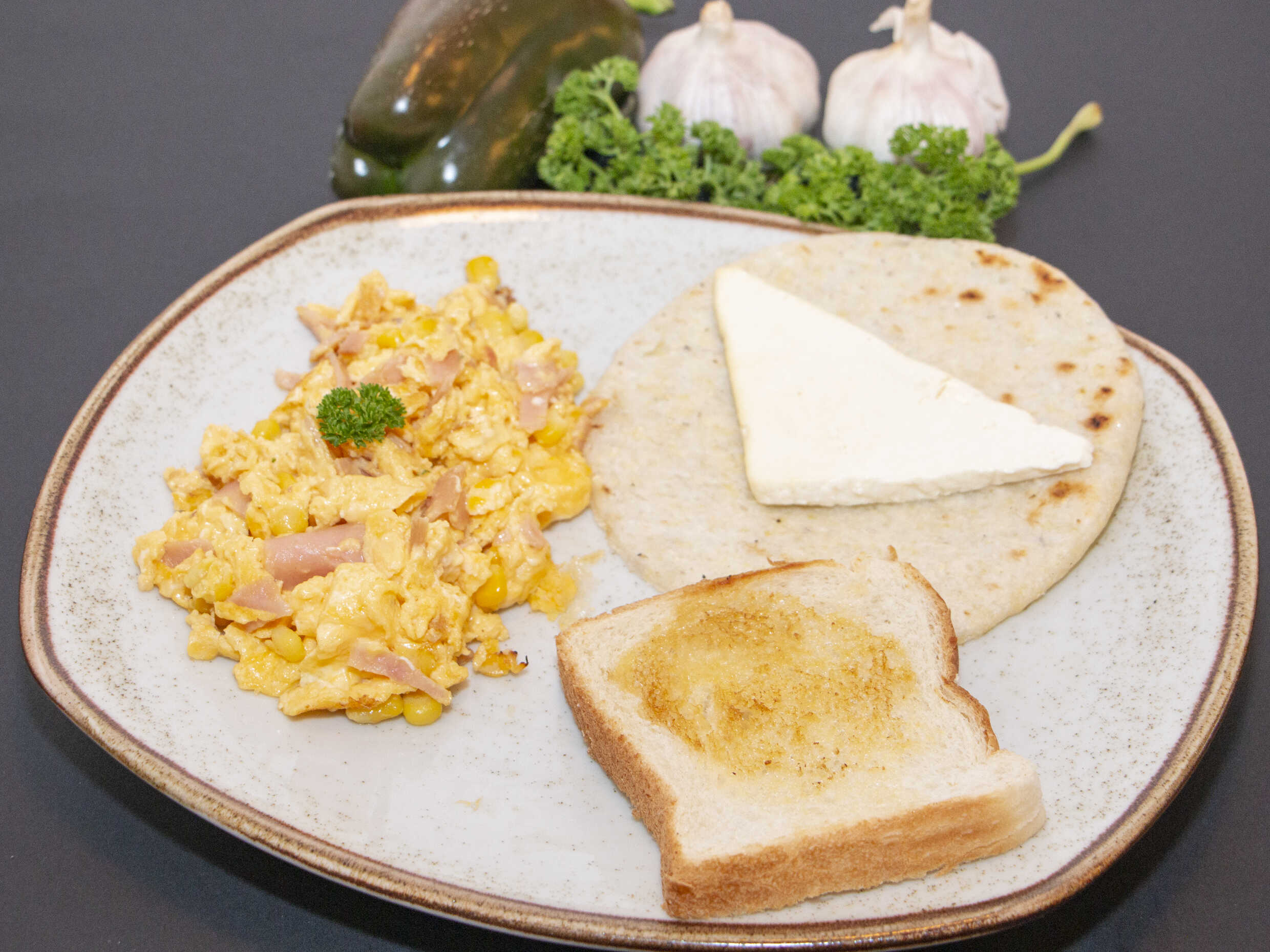 Huevos, , queso y maiz