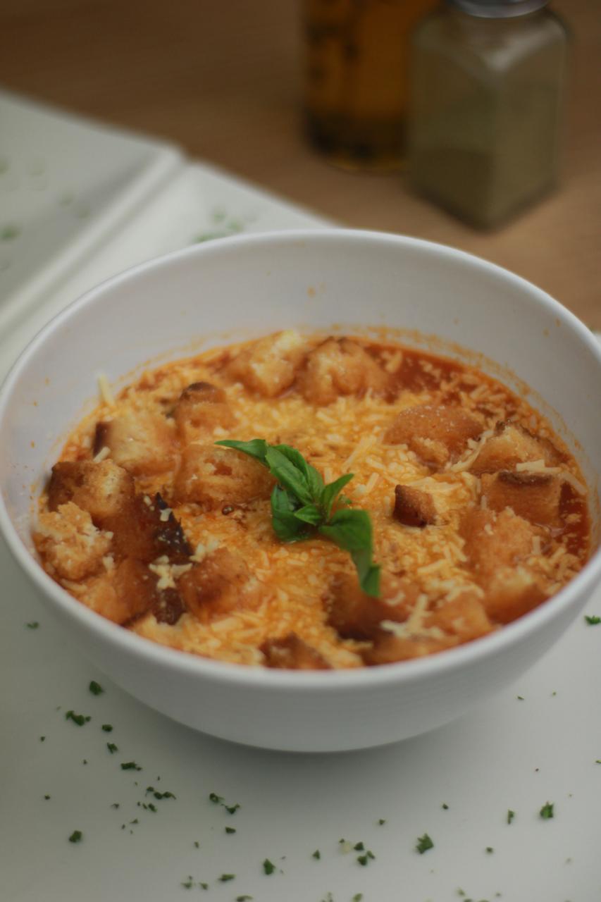 Salsa de tomate con albahaca fresca, aceite de oliva y solomito