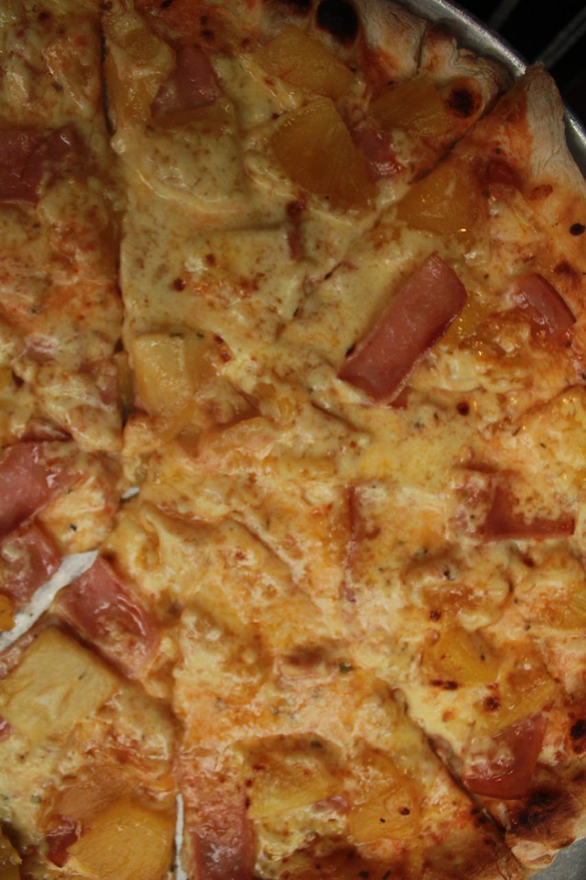 Base napolitana, mozzarella, maíz, tomate cherry, champiñón y cebolla.