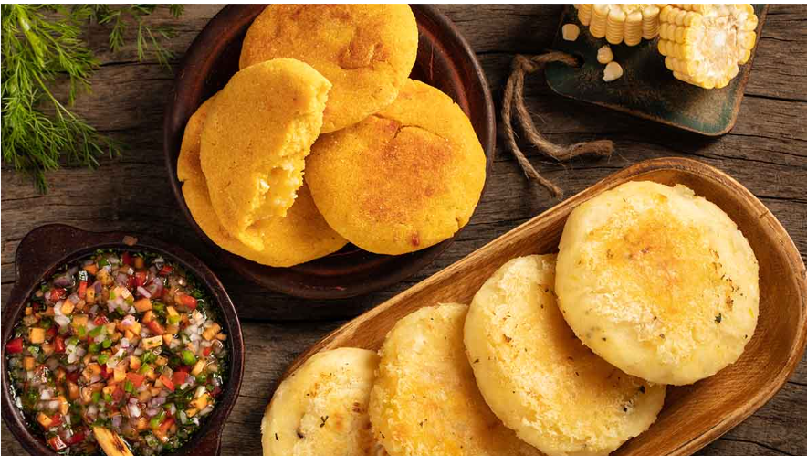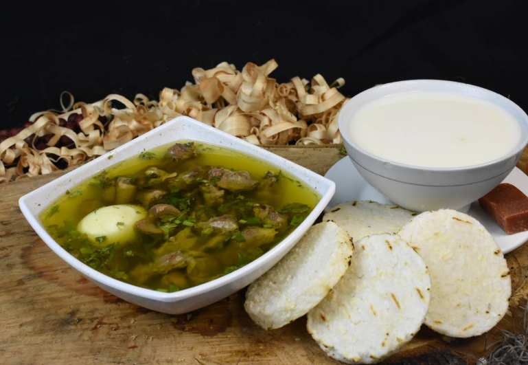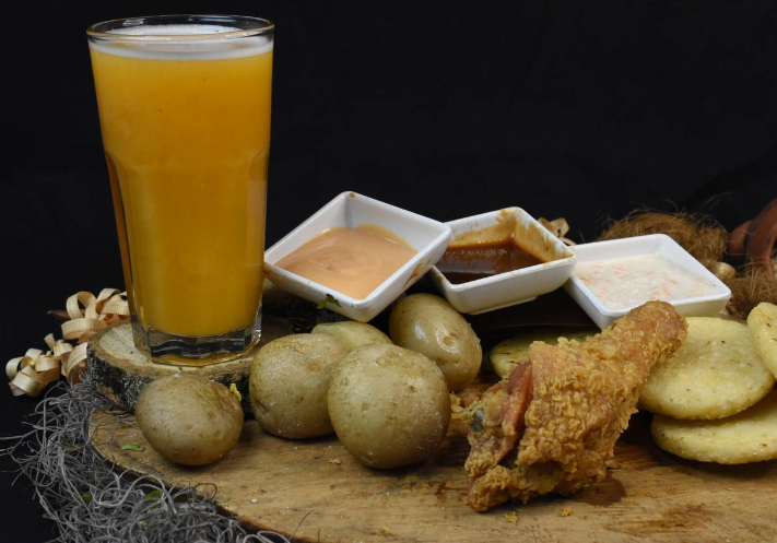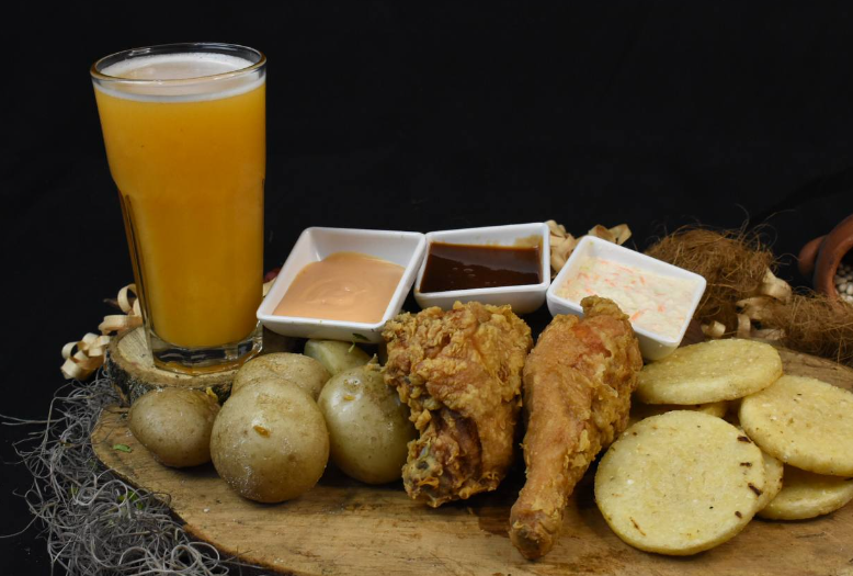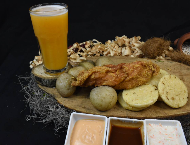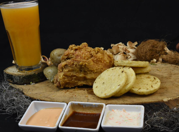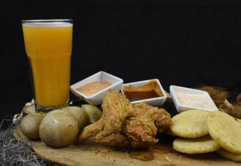 El producto viene acompañado de papa cocida, arepa frita y salsa y miel