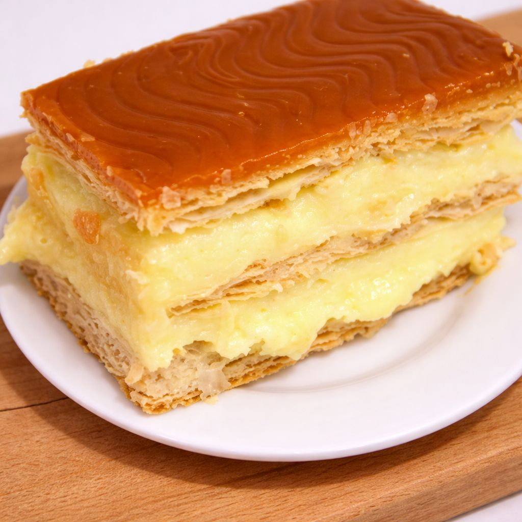 Deliciosa milhoja hojaldrada con crema astelera y dulce y arequipe