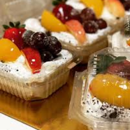 Esponjoso y delicioso bizcochuelo bañado en tres leches, relleno de frutas frescas.