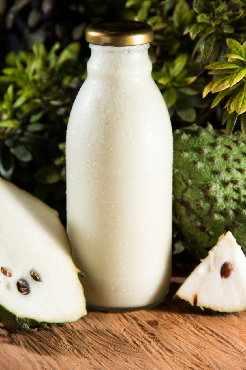 Bebida a base de kumis con pulpa natural de guanábana, endulzada con azúcar morena.