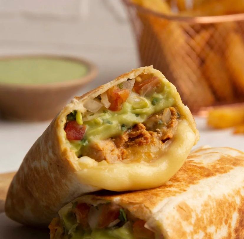 Burrito Guadalupe*2 (Tortilla de Harina, Mayonesa artesanal, pico de gallo, guacamole, 120 gr de pollo salteado en finas hierbas y queso mozzarella)