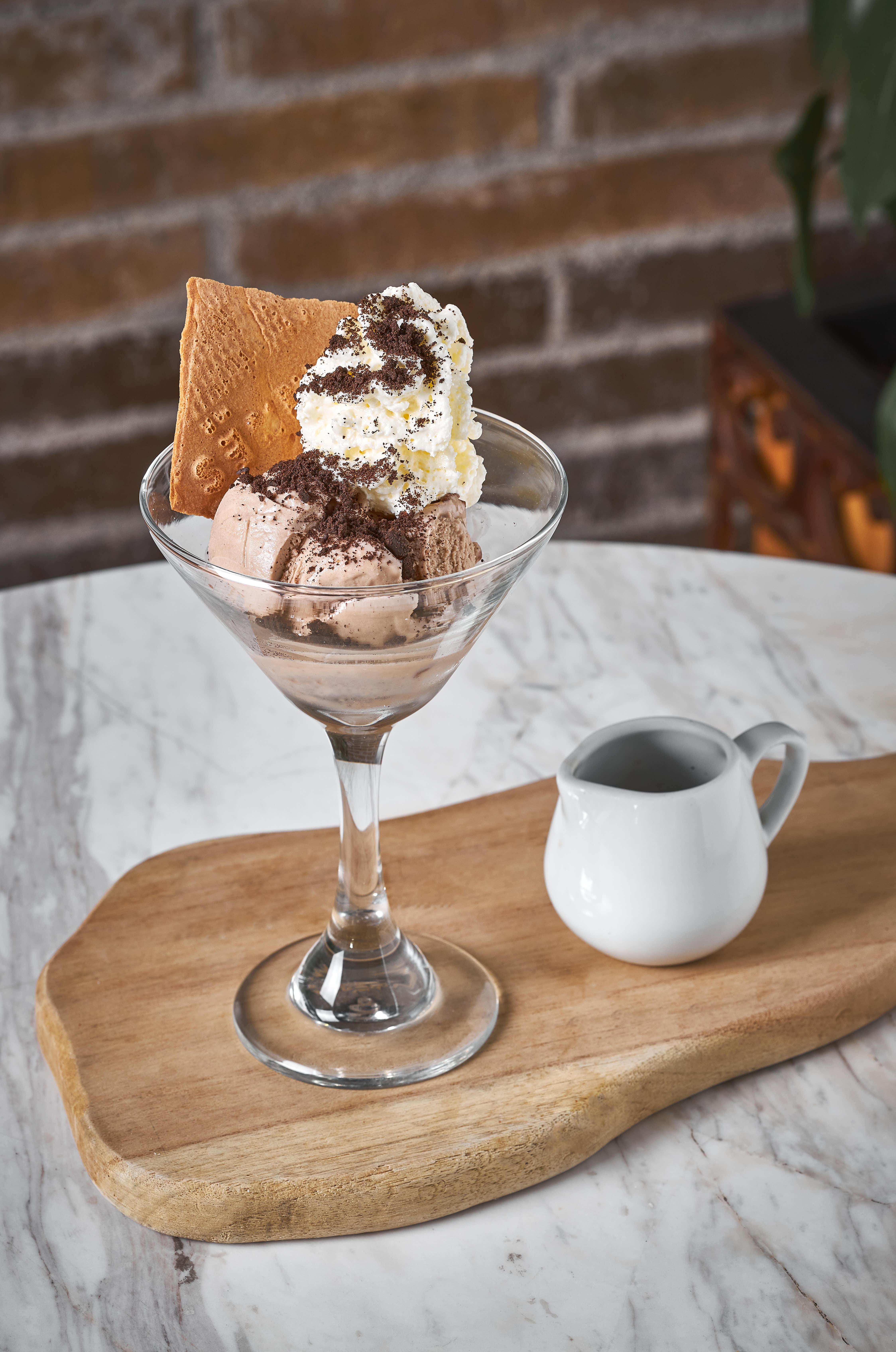 Delicioso brownie de Milo recién horneado con nutella, acompañado de gelato a elección.