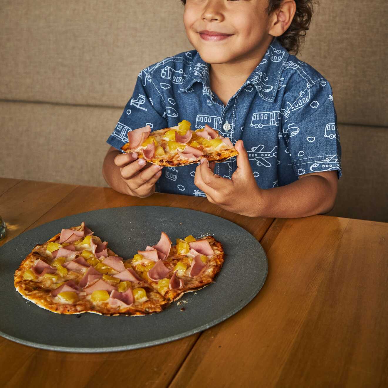 Pizza fresca miel tamaño infantil, acompañada❘ de una deliciosa bolita de nuestro gelato artesanal de vainilla, Oreo o brownie, acompañada de jugo natural a elección (fresa, mandarina, mora, mango).