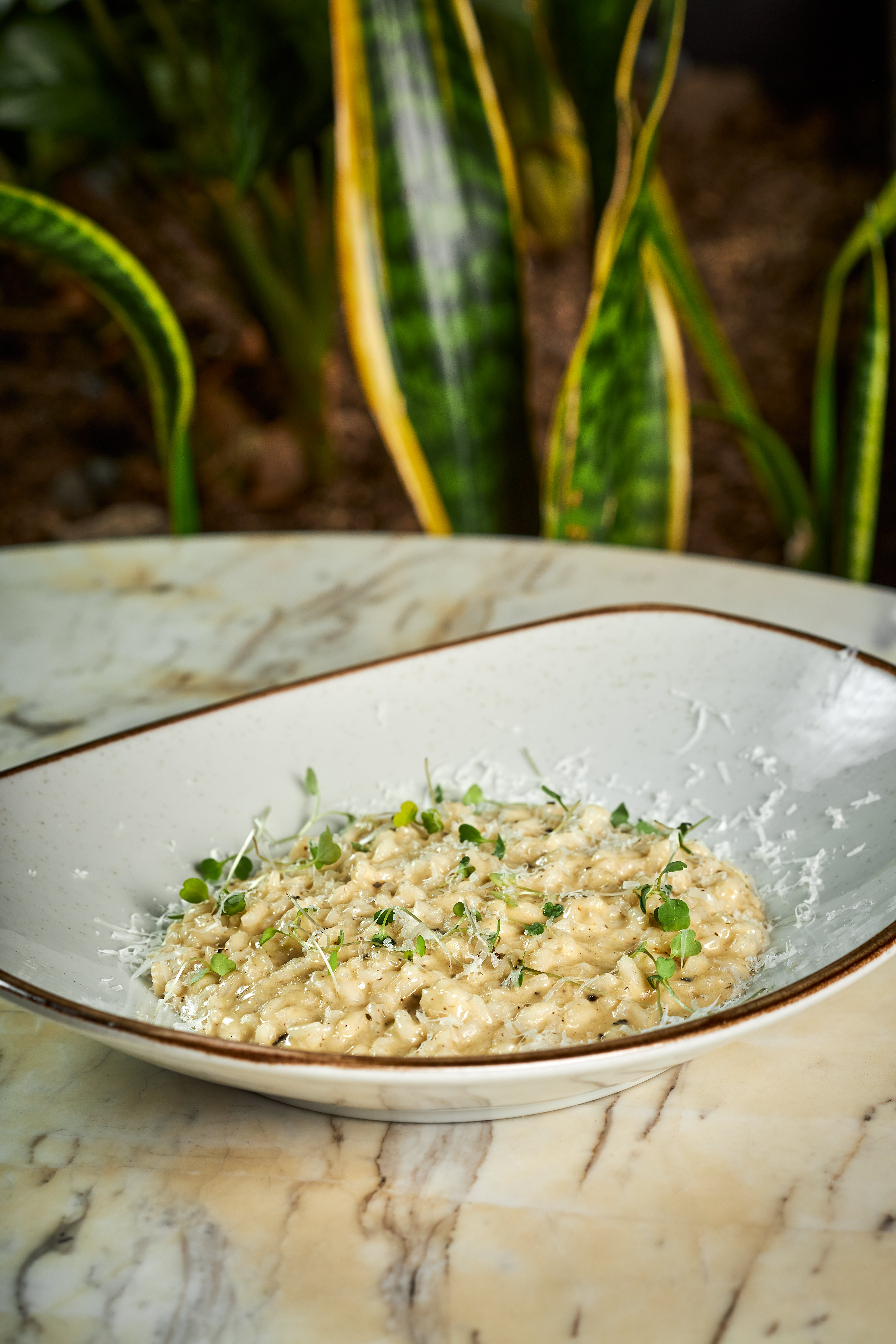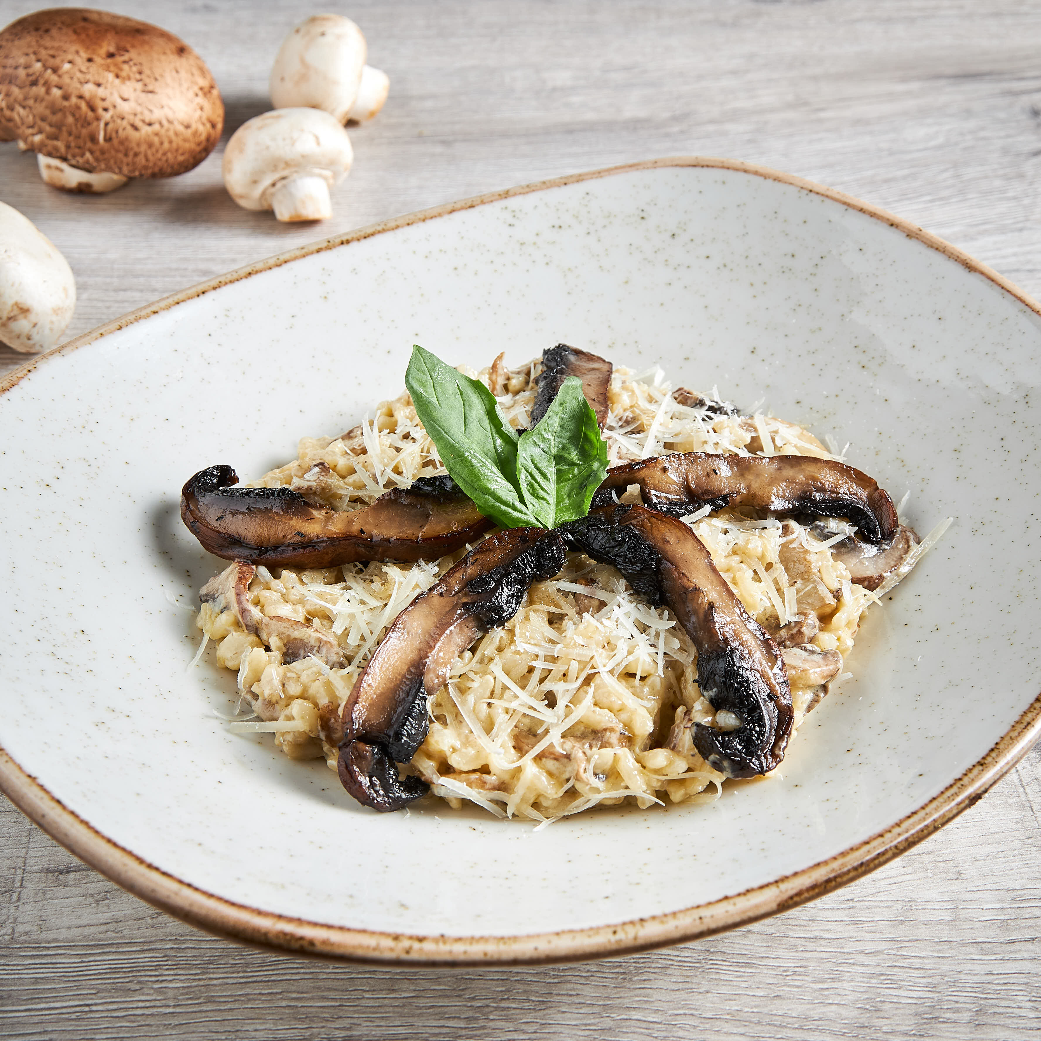 Delicioso risotto acompañado de hongos de temporada salteados con aceite de trufa.