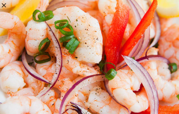 Camarones marinados en jugo de limón cebolla y especias.