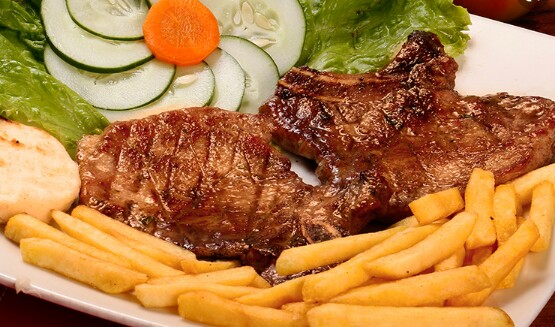 Acompañada de papas a la francesa o patacón, ensalada, consome, guarapo.