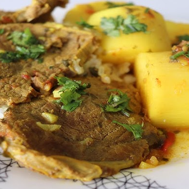 Arroz, Cerdo sudado, papas, ensalada, más jugo del día.De despacha en Caja de C1.