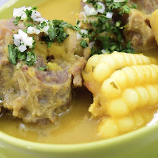 Sancocho de espinazo de cerdo, arroz, ensalada, aguacate o banano, limón, arepa y jugo del día.
