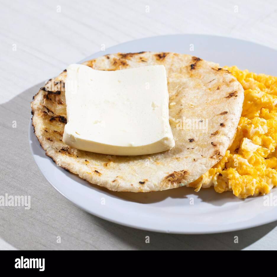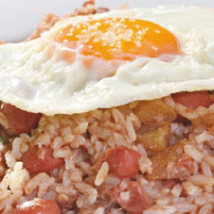 Calentador de arroz con frijol, arepa con queso mozzarella, huevos a elegir y bebida a elegir.
