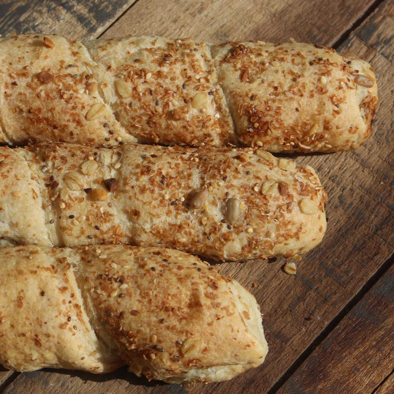 Pan de masa suave con queso cuajada, queso mozzarella y queso crema.
