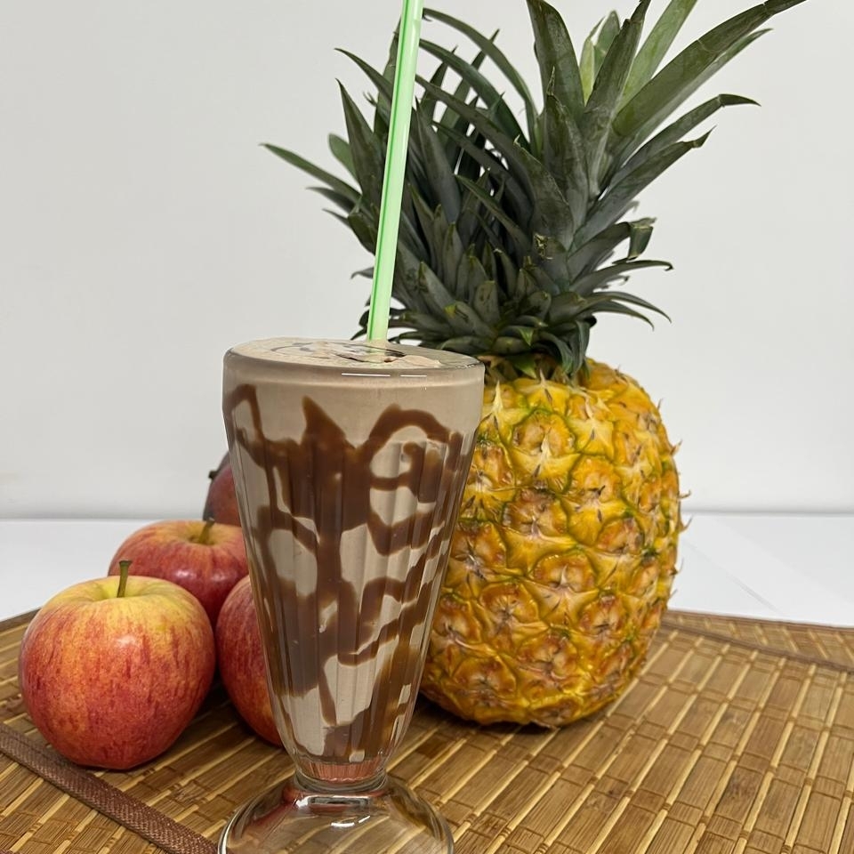 Deliciosa malteada con crema chantilly y salsa de chocolate