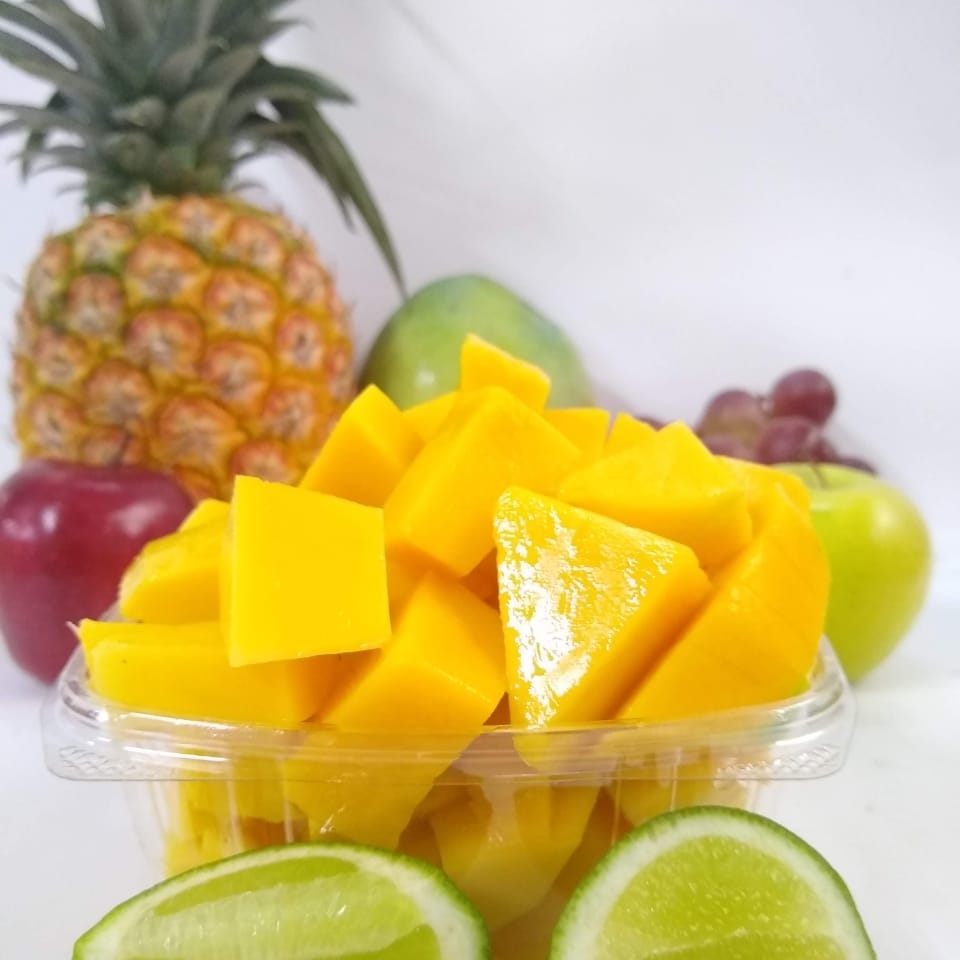 Delicioso Mango picado en trozos,acompañado de sal y pimienta