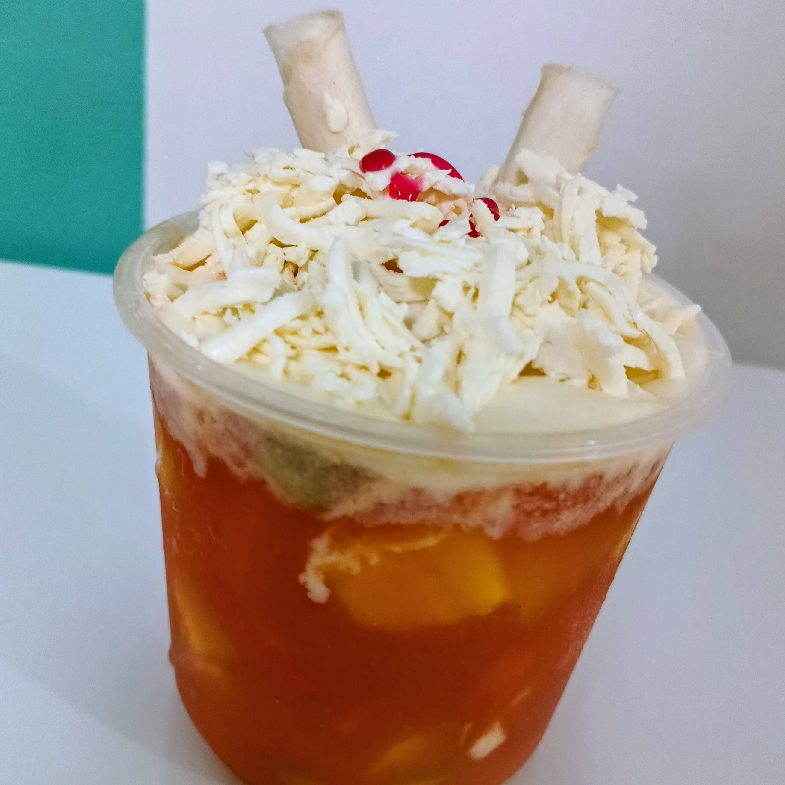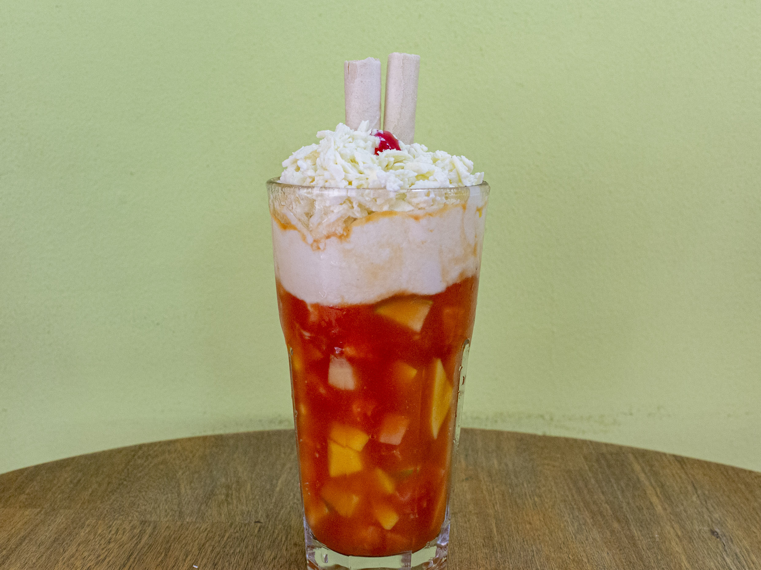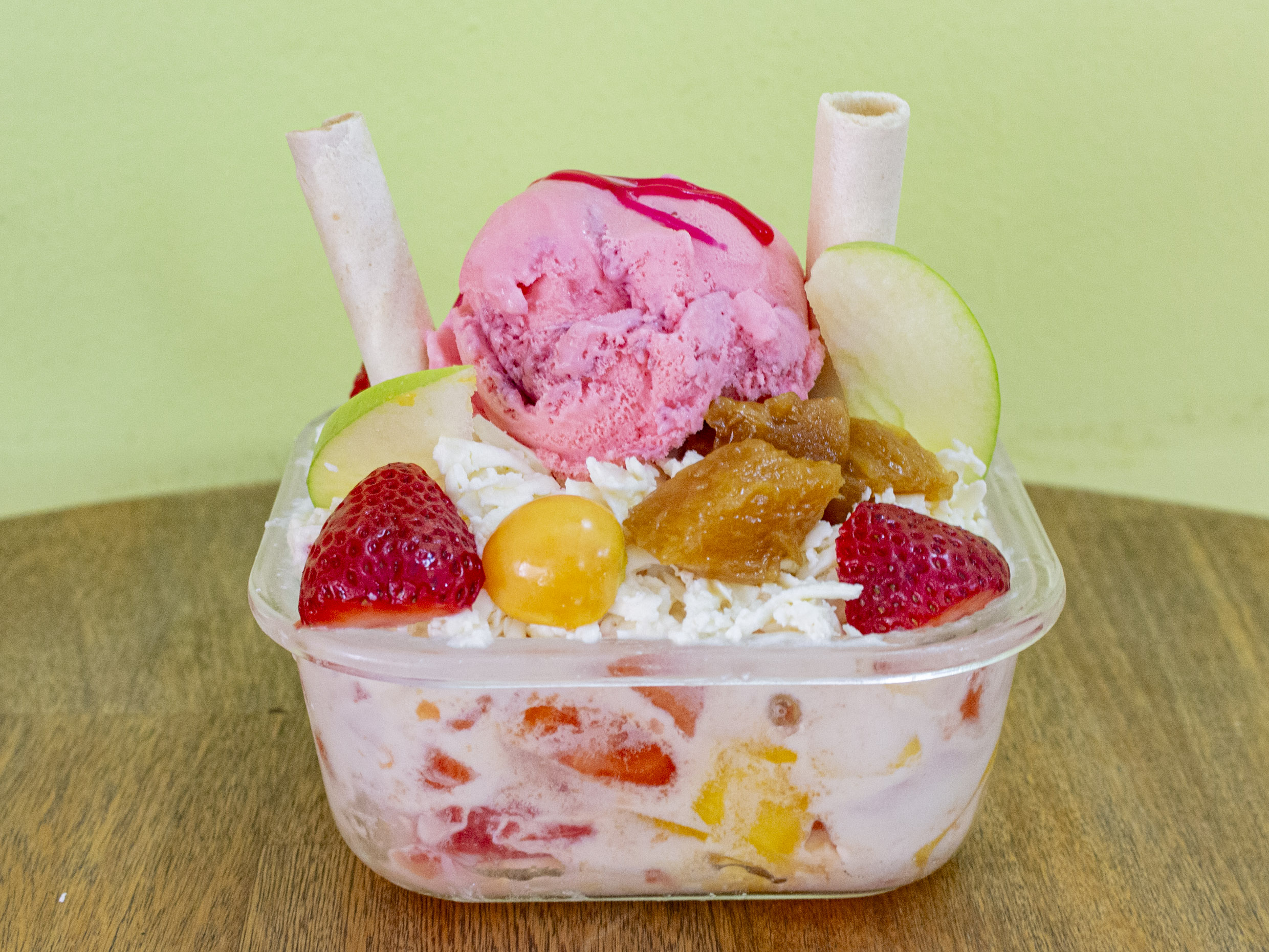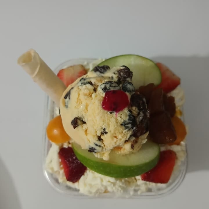 frutas ,crema de la casa ,queso rallado y helado